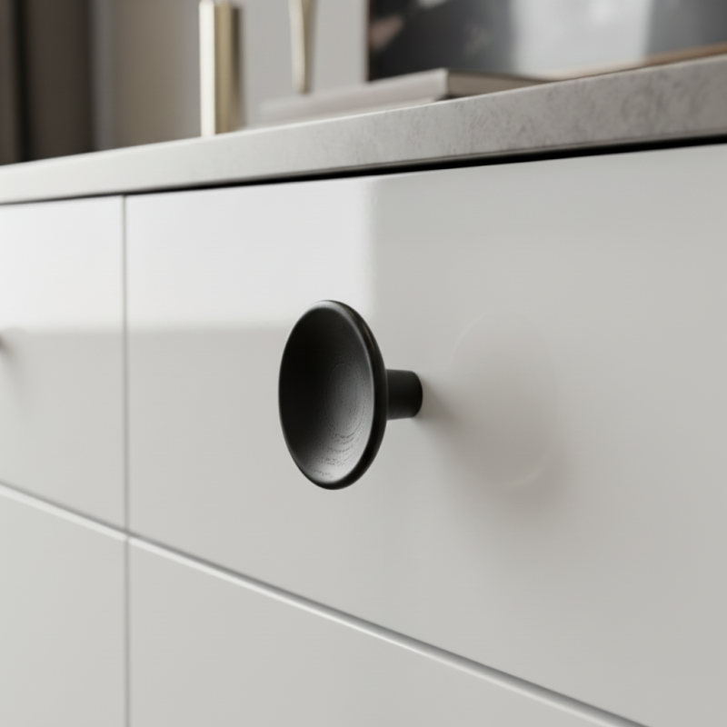 Dřevěná knopka RENO v provedení černá lakovaná představuje elegantní a moderní doplněk nábytku, který kombinuje nadčasový tvar se sofistikovaným barevným provedením. Je vyrobena z masivního dřeva a povrchově upravena kvalitním černým lakem, který zvyšuje její odolnost a zároveň nechává jemně prosvítat přirozenou strukturu dřeva.