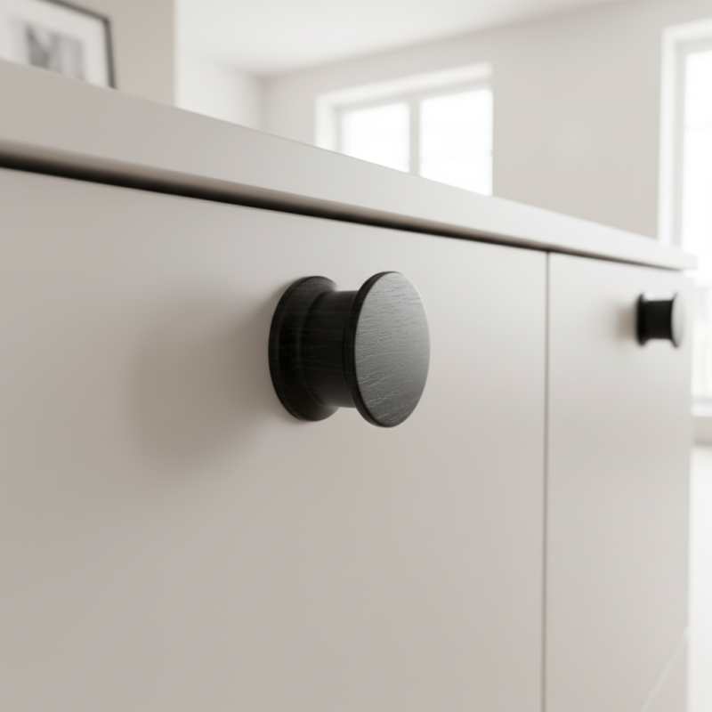 Dřevěná knopka BALENCIA v provedení černá lakovaná je moderním a elegantním detailem, který dodá nábytku výrazný a sofistikovaný charakter. Vyrobena z masivního dřeva, povrchově upravena kvalitním černým lakem, který zvyšuje její odolnost a zároveň jemně zvýrazňuje přirozenou kresbu dřeva.