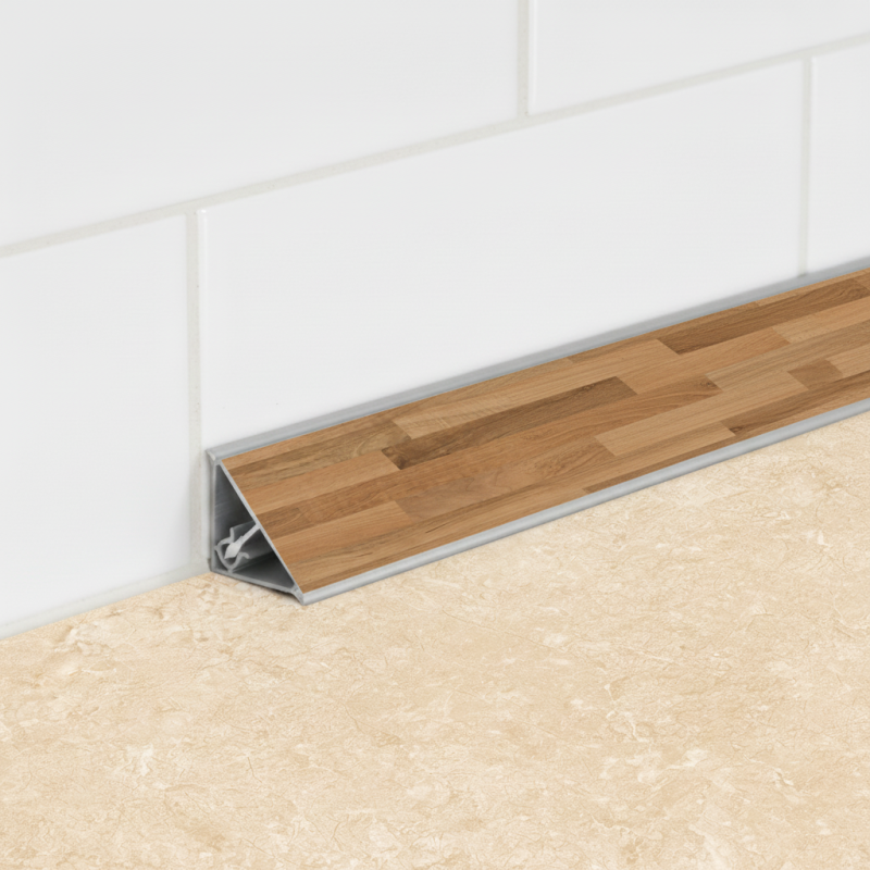Skládá se ze dvou částí – spodní část se přišroubuje nebo přilepí na pracovní desku a horní se následně zacvakne do spodní. Tak vzniká pevné, přesné a harmonické zakončení ve stejném dekoru jako pracovní deska.