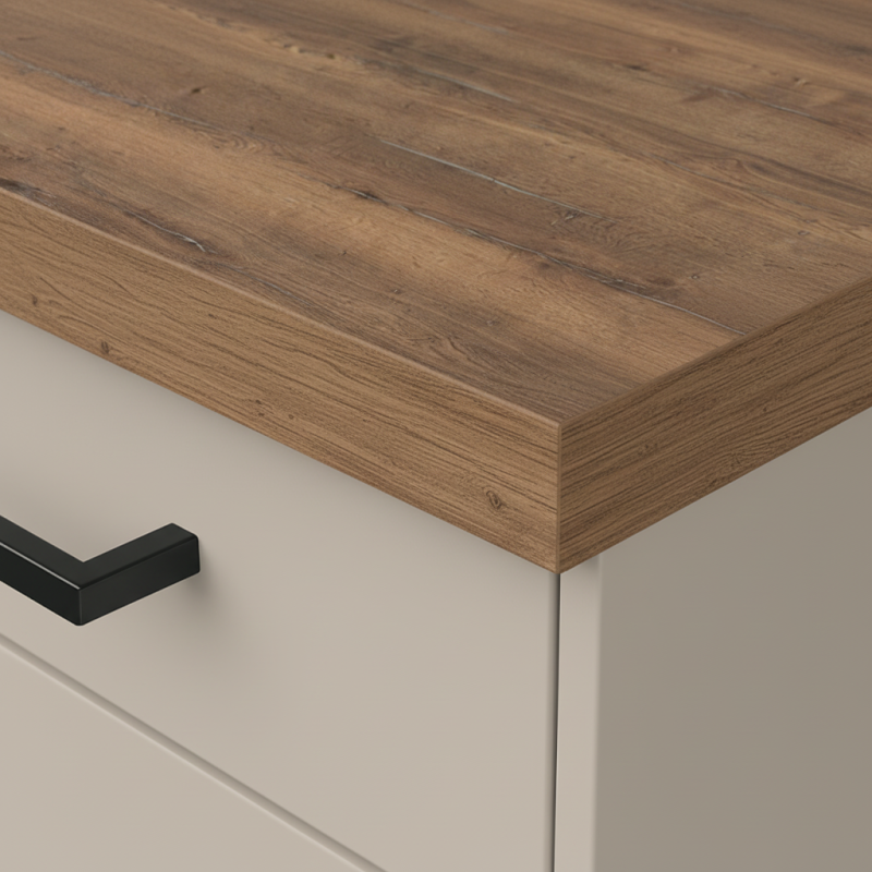 🪵 Rovná ABS hrana – estetický vzhled, vyšší ochrana před vlhkostí.
