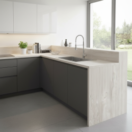 Pracovní desky vyráběné společností EGGER se vyznačují vysokou kvalitou, vynikajícím designem a dlouhou životností. Nenasákavý materiál a složení umožňují snadné čištění a zvyšují hygienický komfort vašeho kuchyňského pracoviště.