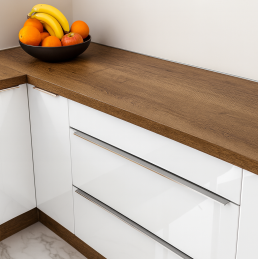 Pracovní desky vyráběné společností EGGER se vyznačují vysokou kvalitou, vynikajícím designem a dlouhou životností. Nenasákavý materiál a složení umožňují snadné čištění a zvyšují hygienický komfort vašeho kuchyňského pracoviště.