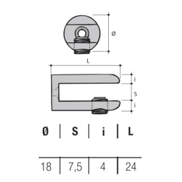 Držák skleněných polic s maximální tloušťkou 7 mm. Cena je uvedena za kus