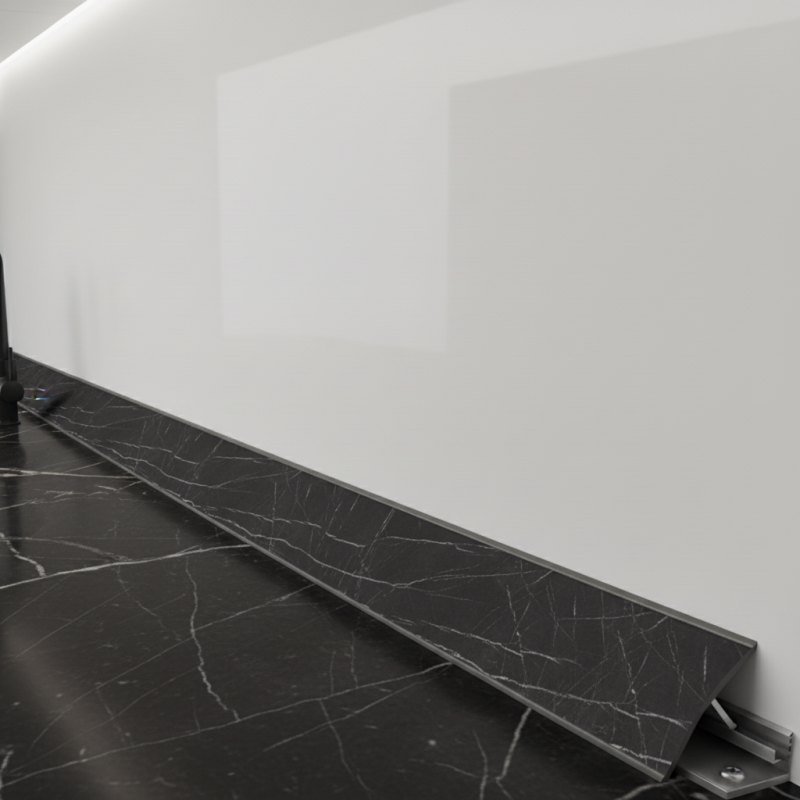Skládá se ze dvou částí – spodní část se přišroubuje nebo přilepí na pracovní desku a horní se následně zacvakne do spodní, čímž vznikne pevné, přesné a estetické zakončení ve stejném dekoru jako pracovní deska.