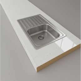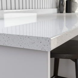 Moderní a elegantní pracovní deska KRONOSPAN v dekoru Andromeda Bílá lesklá (K217 GG) je ideální volbou pro ty, kteří touží po čisté, světlé a luxusní kuchyni. Povrch s jemným třpytivým efektem připomíná hvězdný prach a dodává interiéru výjimečný lesk a hloubku.