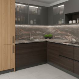 Povrchová struktura ST9 Smoothtouch Matt je jemně matná, příjemná na dotek a zároveň odolná vůči každodennímu používání. Výborně se kombinuje se dřevem, černým i antracitovým nábytkem a vytváří originální designový prvek v kuchyni či pracovním prostoru.