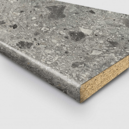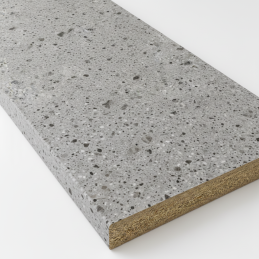 Pracovní deska EGGER Terrazzo Triestino Šedé (F021 ST75) vnáší do interiéru nadčasový italský styl. Dekor připomíná tradiční terrazzo – směs přírodního kamene s jemnými strukturami a nepravidelnými fragmenty v odstínech šedé, bílé a černé. Díky tomu působí elegantně, moderně a výborně se kombinuje se dřevem, betonem i minimalistickými hladkými povrchy.