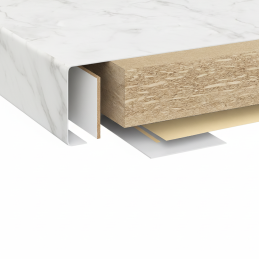 Povrch: laminát EGGER s realistickou mramorovou strukturou