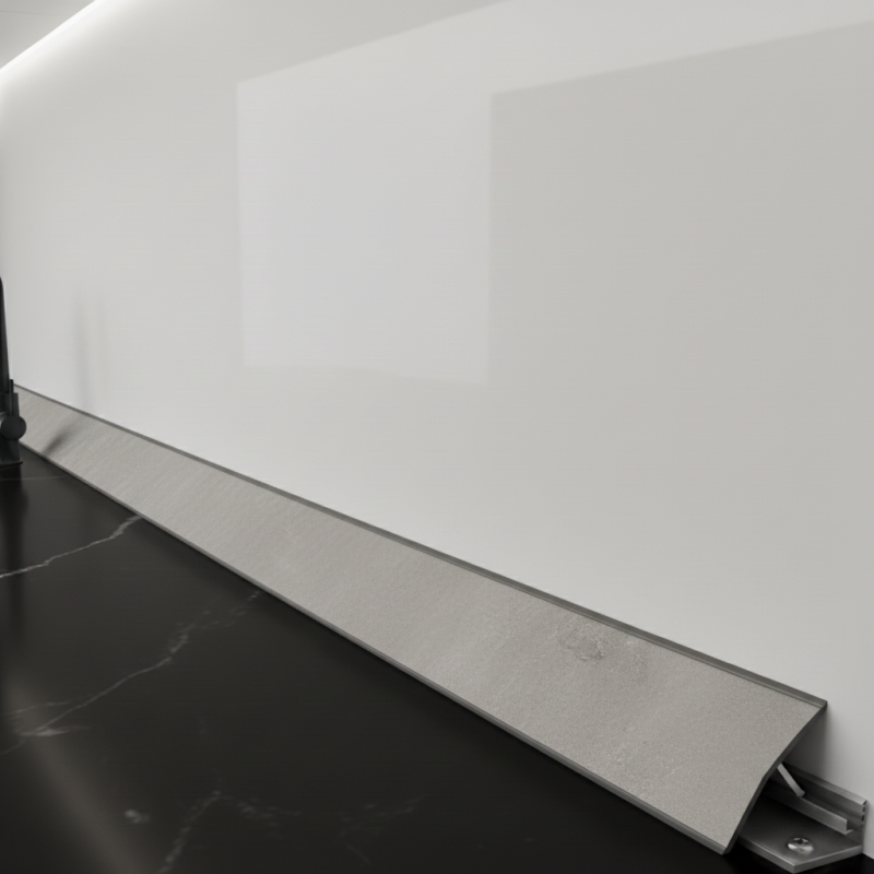 Skládá se ze dvou částí – spodní část se přišroubuje nebo přilepí na pracovní desku a horní se následně zacvakne do spodní. Tak vzniká pevné, přesné a elegantní zakončení ve stejném dekoru jako pracovní deska.