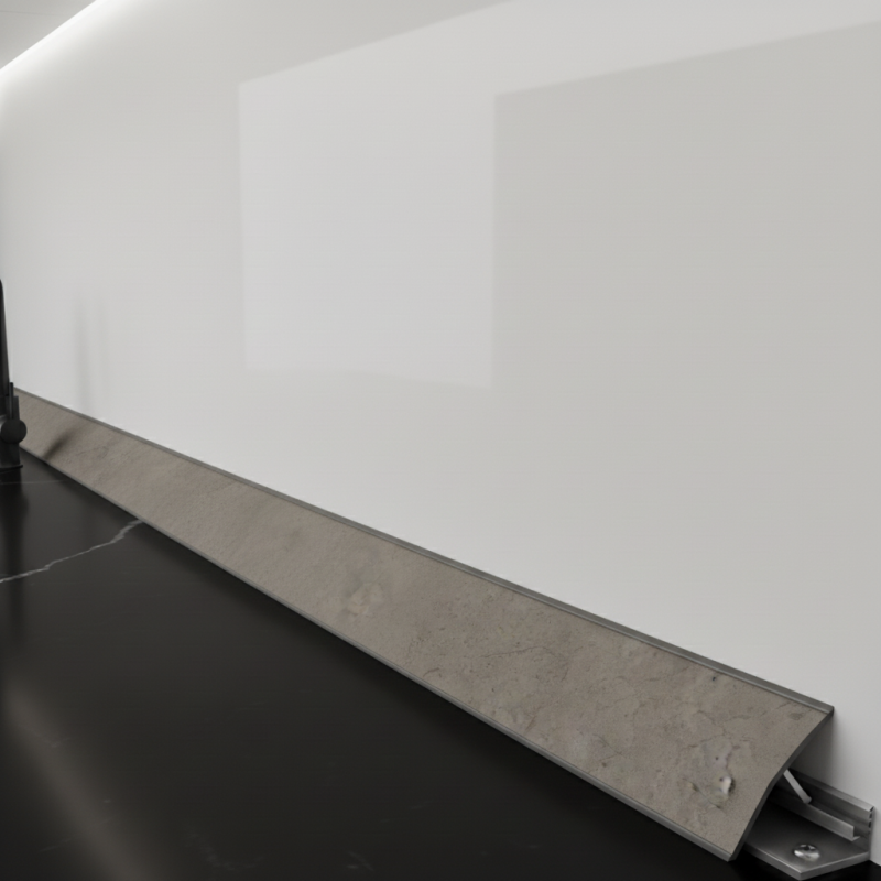 Skládá se ze dvou částí – spodní část se přišroubuje nebo přilepí na pracovní desku a horní se následně zacvakne do spodní. Tak vzniká pevné, přesné a estetické zakončení ve stejném dekoru jako pracovní deska.