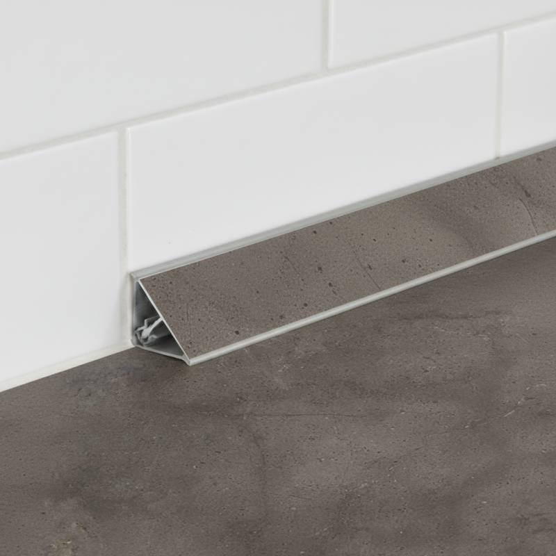 Elegantní a stylová těsnicí lišta KRONOSPAN v dekoru Fossil Arosa (K539) je určena pro profesionální a precizní zakončení pracovních desek. Lišta spolehlivě utěsňuje spoj mezi pracovní deskou a stěnou, čímž účinně zabraňuje pronikání vody a nečistot a zároveň dodává kuchyni moderní a přírodní vzhled kamene v tmavě šedém až grafitovém odstínu s jemnou texturou a perleťovým efektem.