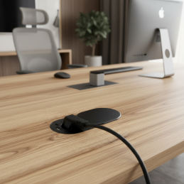 Elegantní a mimořádně praktická elektrická zásuvka SLIDE v černé matné barvě je určena k montáži do pracovní desky, stolové desky nebo nábytku. Díky posuvnému krytu, který při používání jednoduše odsunutete do strany, šetří místo a zároveň působí moderně a čistě.
