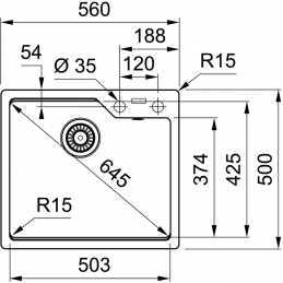 • Vnější rozměr dřezu: 560 × 500 mm.