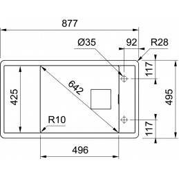 • Vnější rozměry dřezu: 877 × 495 mm.