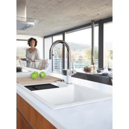 Tento model je ideální volbou pro ty, kteří hledají praktický, elegantní a odolný granitový dřez. Díky inteligentně řešené úložné misce, prostorné odkapové ploše a výpusti InFino® přináší komfort, estetiku a jednoduchost údržby do každé moderní kuchyně.