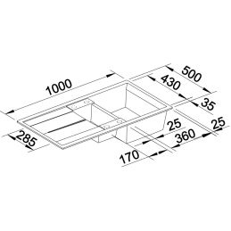 Velkorysé rozměry dřezu: 1000 × 500 mm – dostatek pracovního prostoru.
