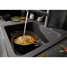 Blanco Naya 5 je praktický žulový kuchyňský dřez, navržený pro efektivní využití prostoru v menších až středně velkých kuchyních. Díky požadavku na minimální šířku skříňky 50 cm a absenci odkapové plochy nabízí maximální pracovní plochu na lince při zachování komfortní velikosti vaničky.