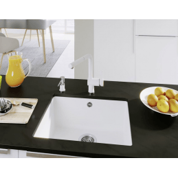 Díky podmontážnímu řešení dřez dokonale splývá s pracovní deskou a vytváří moderní, bezespárový vzhled. Ideálně se kombinuje s pracovními deskami z: