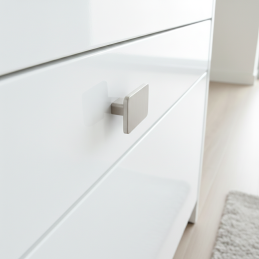 Úchytka je vyrobena z kvalitního kovu, který zajišťuje pevnost, stabilitu a dlouhou životnost. Jednoduchý tvar se zaoblenými hranami poskytuje pohodlný úchop a nadčasový vzhled.