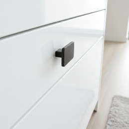 Úchytka je vyrobena z kvalitního kovu, který zajišťuje pevnost, stabilitu a dlouhou životnost. Jednoduchý geometrický tvar se zaoblenými hranami poskytuje pohodlný úchop a čistý design.