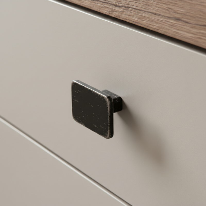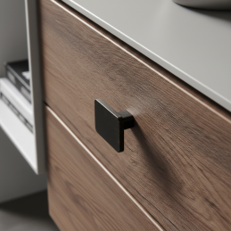 Úchytka SIMPS v černé patině je ideální volbou pro zákazníky, kteří hledají originální a designově výrazný detail pro svůj nábytek.