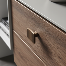 Úchytka SIMPS v kartáčované mosazi je ideální volbou pro zákazníky, kteří hledají kvalitní a designově výrazný detail pro svůj nábytek.