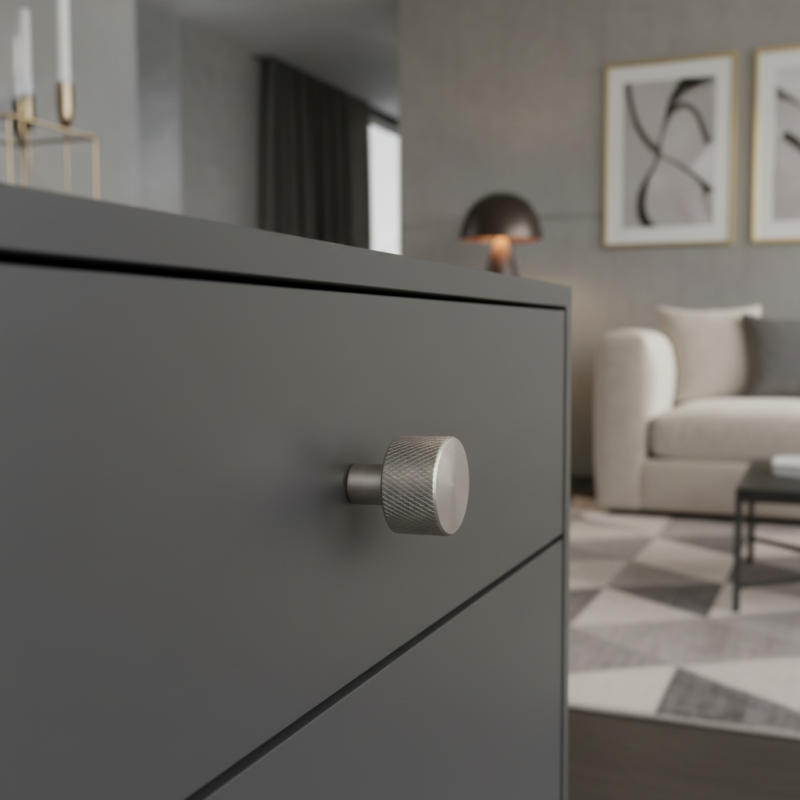 Knopka INDUST II. v povrchové úpravě ušlechtilá ocel mat nabízí čistý industriální design spojený s elegantním saténovým vzhledem. Díky většímu průměru působí jako výrazný, ale zároveň nadčasový prvek vhodný do moderních, loftových i minimalistických interiérů.