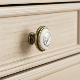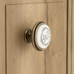 Porcelánová knopka FRIDA ve starozlatém provedení je krásným a nadčasovým doplňkem, který dodá vašemu nábytku noblesní vintage charakter. Kombinuje kvalitní porcelán s elegantním dekorem Vintage 1898 a kovové tělo ve starozlaté patině, což spolu vytváří stylový prvek vhodný do klasických i venkovských interiérů.