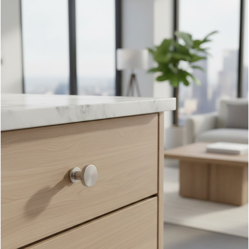 Díky kompaktním rozměrům je ideální na menší dvířka a zásuvky, kde vytváří čistý a harmonický vzhled.