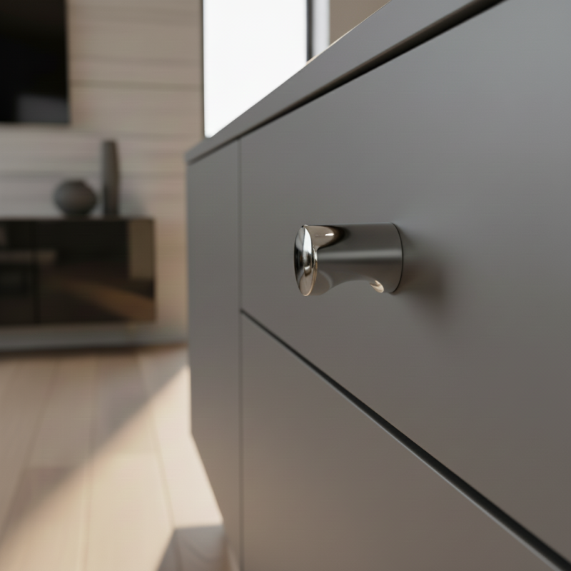 Lesklý chromový povrch dodává knoflíku výrazný, zářivý efekt, který krásně zapadne do moderních, glamour i minimalistických interiérů. Díky hladkému, zrcadlovému povrchu působí úchytka mimořádně elegantně a zároveň se jednoduše udržuje.