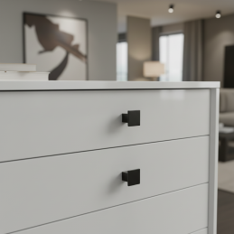 Knoflík AXON v elegantním černém matném provedení je ideální volbou pro moderní interiér. Minimalistický hranatý design dodá nábytku čistý, nadčasový vzhled a zároveň poskytne pohodlné a spolehlivé uchopení. Díky kvalitnímu zpracování je úchytka vhodná do kuchyní, koupelen, šaten či kancelářského nábytku.