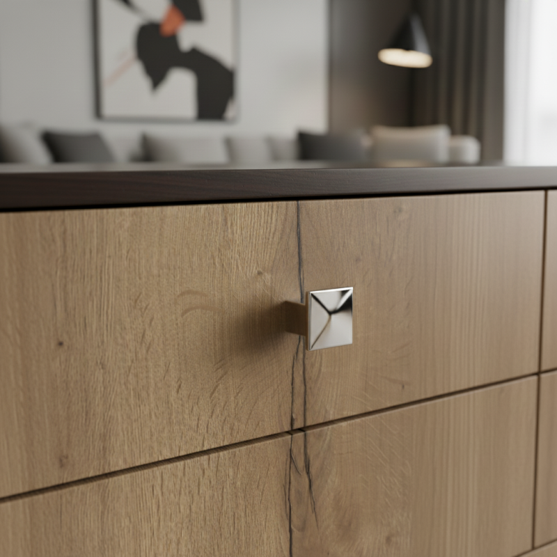 Knoflík AXON v lesklém chromovém provedení představuje elegantní a nadčasový prvek, který dodá vašemu nábytku luxusní vzhled. Hranatý tvar s čistými liniemi působí moderně, zatímco vysoce lesklý povrch dodává prostoru výjimečný vizuální akcent. Díky preciznímu zpracování a pevné konstrukci je vhodný do kuchyně, koupelny, obývacího pokoje i kancelářského nábytku.