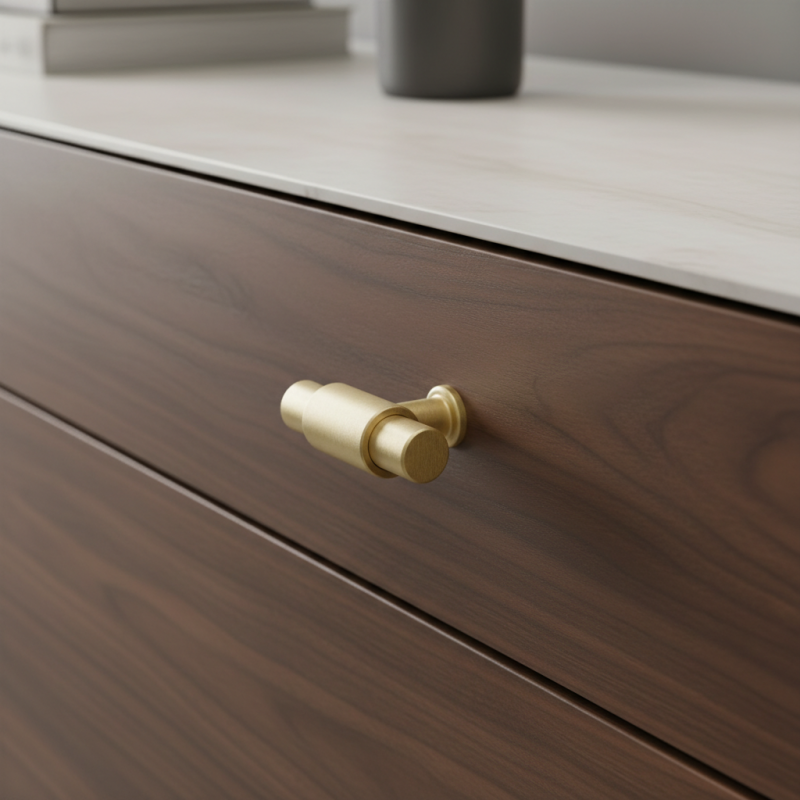 Knopka je vyrobena z kvalitní slitiny, která zajišťuje vysokou pevnost, stabilitu a dlouhou životnost. Broušený zlatý povrch působí exkluzivně, ale zároveň jemně a vkusně.