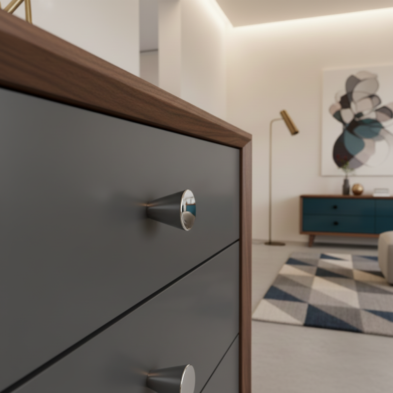 Elegantní a moderní nábytková knopka MANGO v povrchové úpravě lesklý chrom dodá vašemu nábytku nadčasový a prémiový vzhled. Díky jednoduchému kónickému tvaru se pohodlně uchopuje a snadno kombinuje s různými styly interiéru.