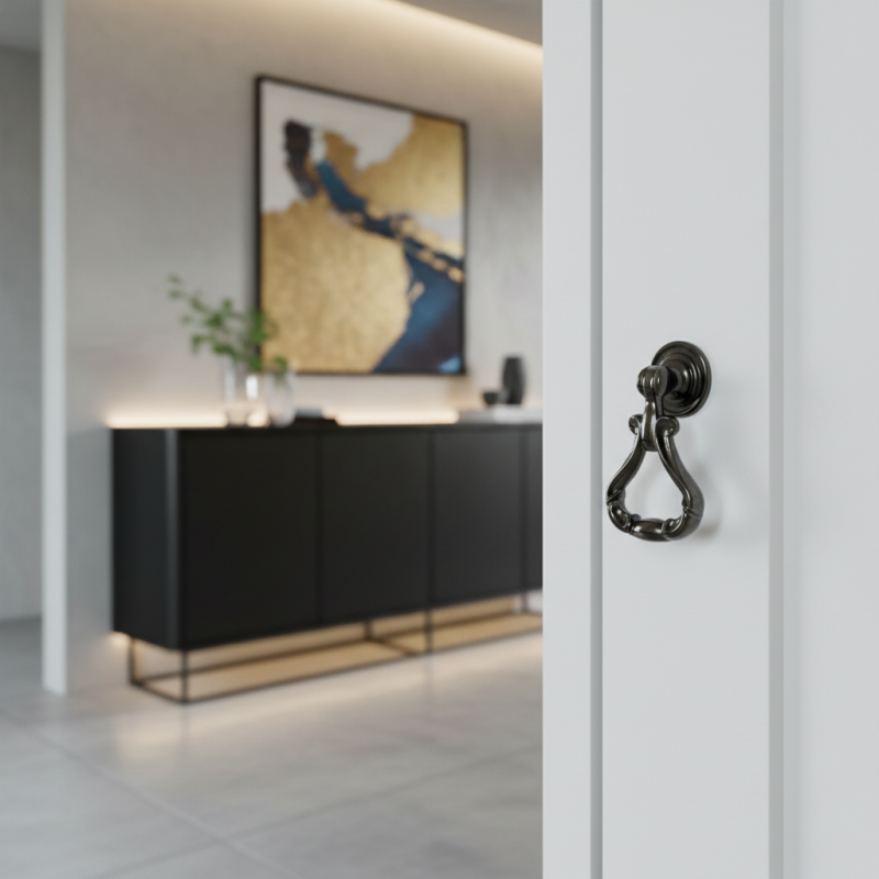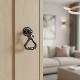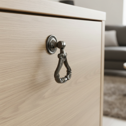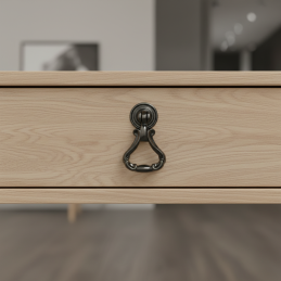 Stylová rustikální úchytka typu knopka CORTINA v černém lesklém provedení je výrazným designovým prvkem pro klasický, vintage nebo rustikální nábytek. Elegantní tvar s pohyblivým spodním úchopem dodává nábytku jedinečný charakter a dekorativní vzhled.