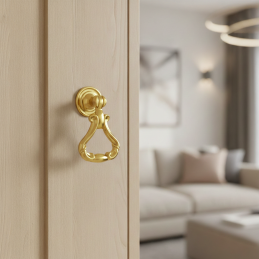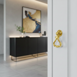 Elegantní rustikální nábytková úchytka typu knopka CORTINA ve zlatém lesklém provedení je výrazným dekorativním doplňkem pro klasický a vintage nábytek. Bohatě tvarovaný design s pohyblivým spodním úchopem dodává nábytku luxusní vzhled a zvýrazňuje jeho styl.