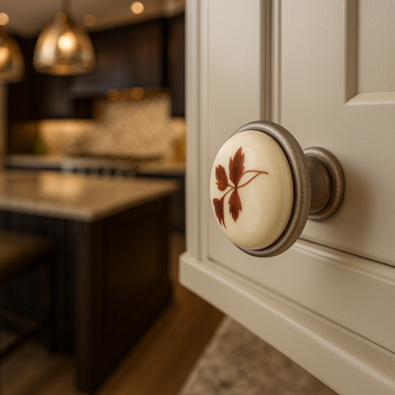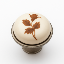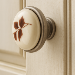 Porcelánová knopka TOSCANA je dokonalým spojením tradičního stylu a nadčasové elegance. Kombinace kovové spodní části v úpravě nikl patina a porcelánového vrchního dílu s jemným motivem listu dodává každému nábytku jedinečný charakter.