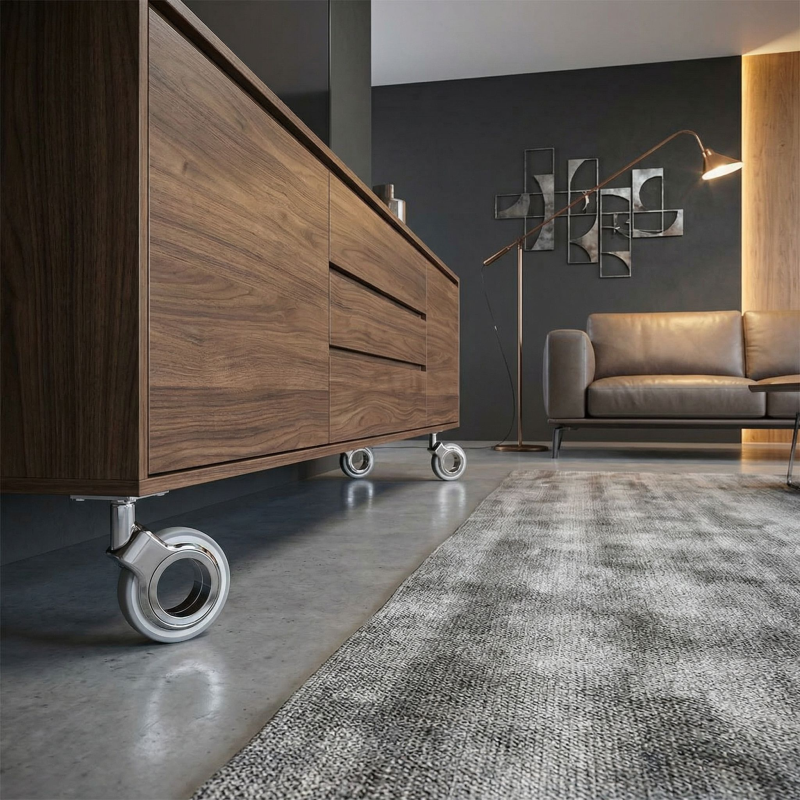 Otočné nábytkové kolečko NOVA v provedení chrom – šedá je ideálním řešením pro nábytek, který vyžaduje plynulý a tichý pohyb. Elegantní kombinace chromovaného těla a šedého kolečka působí moderně a je vhodná do domácností i komerčních prostor.