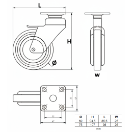 Průměr kolečka (Ø): 60 mm nebo 75 mm