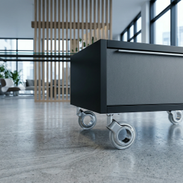 Kolečko je vybaveno měkčeným běhounem, díky kterému je šetrné k podlahám. Je vhodné i na parkety, dřevěné, laminátové či vinylové podlahy a nezanechává škrábance ani poškození povrchu.