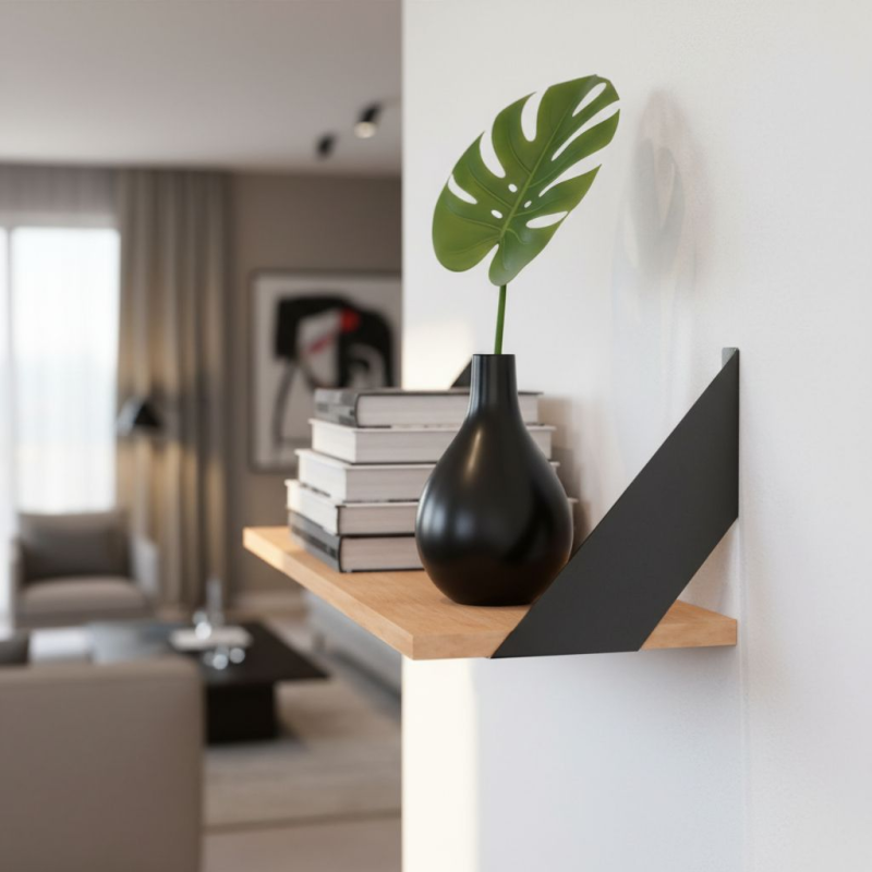 Držák MARCOS nabízí moderní estetiku, jednoduchou montáž a vysokou stabilitu. Je to ideální volba pro otevřené police v obýváku, kuchyni, kanceláři i ložnici – všude tam, kde chcete spojit funkčnost s čistým designem.