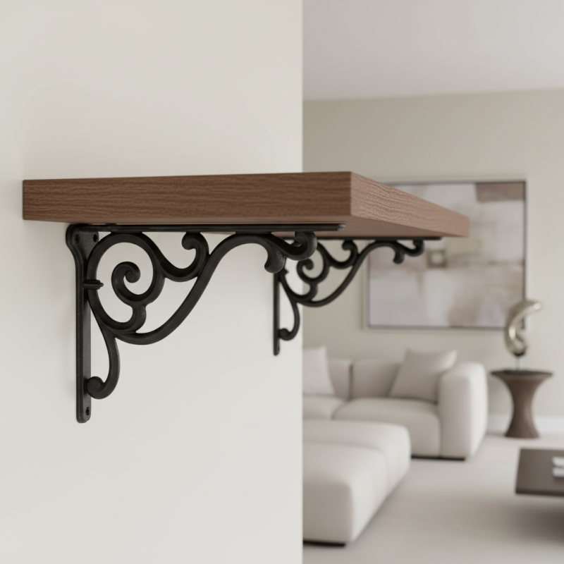 Masivní a dekorativní držák police ve vintage stylu, který vnese do interiéru noblesu a rustikální eleganci. Bohatě tvarované ornamenty a robustní provedení z něj dělají nejen praktický, ale i výjimečně estetický prvek vhodný do kuchyní, obývacích pokojů, chodeb či chalupářských prostor.