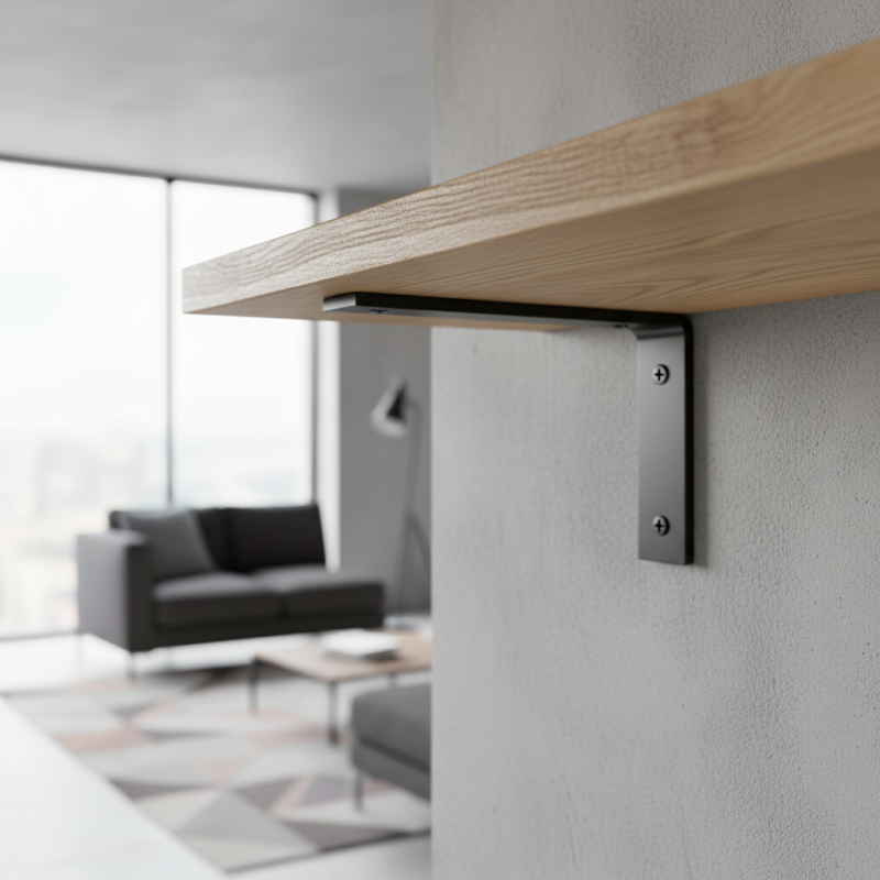 Moderní a stylový držák police LAVERA v povrchové úpravě černá matná je ideální volbou pro stabilní a elegantní uchycení polic na stěnu.