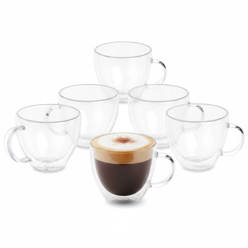Dvojitá skleněná stěna udrží váš nápoj déle teplý nebo studený, přičemž vnější povrch sklenice zůstává příjemně chladný na dotek. Transparentní design dodává sklenicím moderní vzhled a umožňuje naplno vychutnat vizuální efekt kávy, čaje či jiných nápojů.
