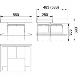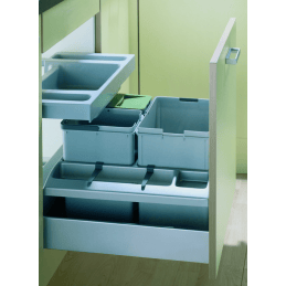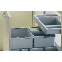 Odpadkový koš Franke je systém třídění odpadu nové generace, vhodný pro spodní skříňku o průměru 60 cm se třemi koši na třídění odpadu