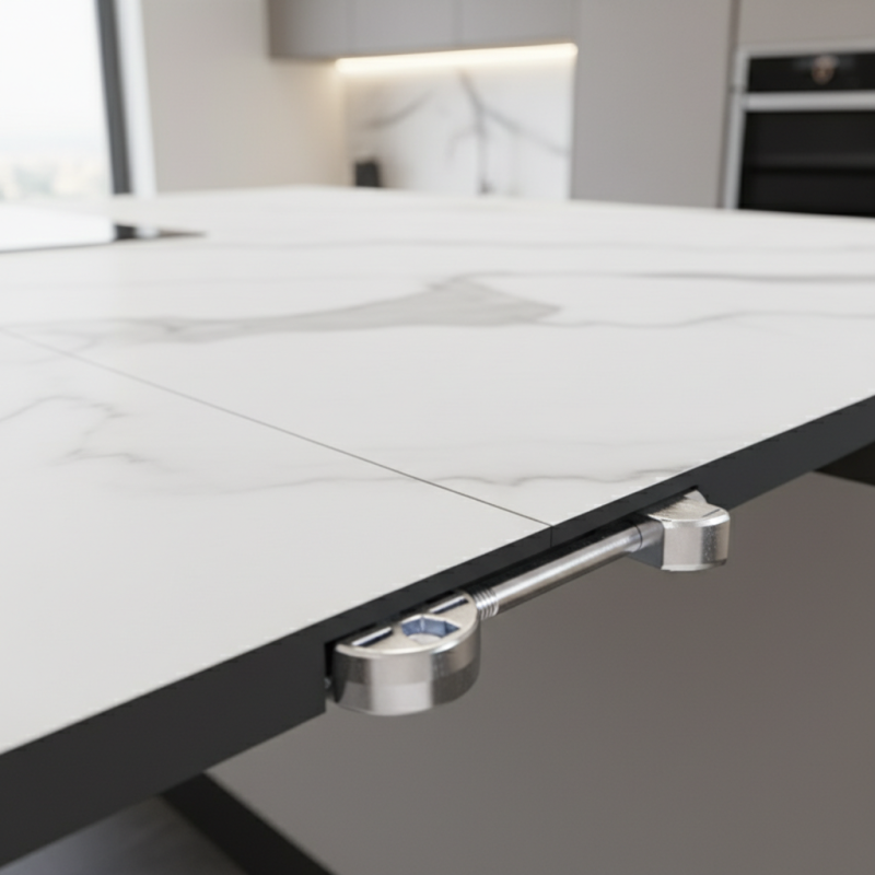Spojovací kování KOMP je určeno pro pevné a spolehlivé spojování kompaktních pracovních desek a panelů. Představuje efektivní řešení pro profesionální montáž, kde je kladen důraz na vysokou pevnost spoje a precizní zarovnání materiálu.