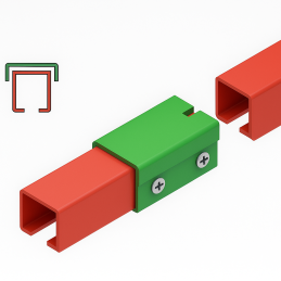 Spojka je určena ke spojení dvou kolejnic K-075 do jednoho celku. Díky svému přesnému tvaru a zpracování umožňuje přesné a stabilní spojení, které zajišťuje plynulý a tichý chod posuvných dveří bez trhání.