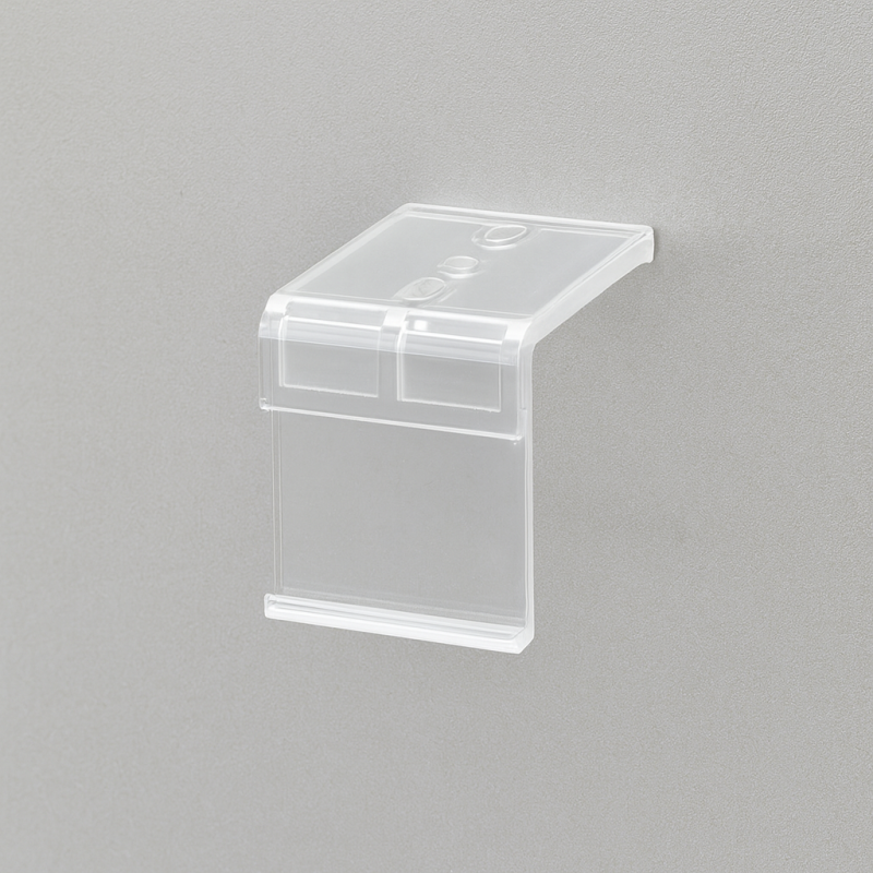 Plastové uchycení krycí lišty vyrobené z hliníku. Montáž se provádí přes stejný šroub jako samotné uchycení. Následně se krycí lišta nacvakne na úchyty.