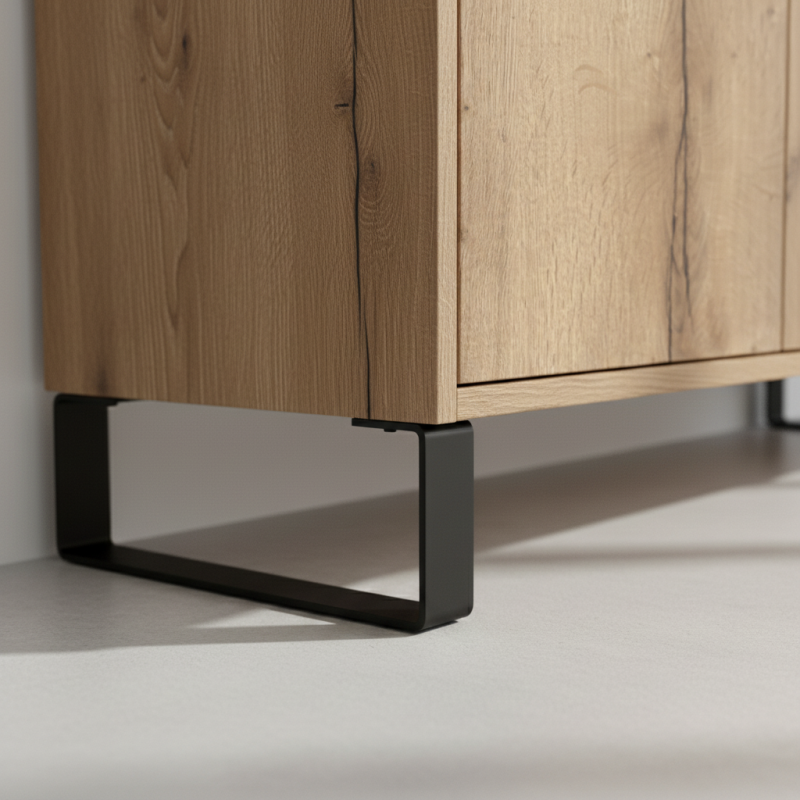 Nábytková podnož THOMAS v elegantním černém matném provedení je ideálním řešením pro moderní komody, skříňky, TV stolky či lavice. Díky minimalistickému tvaru ve tvaru obráceného „U“ působí moderně, čistě a zároveň dodává nábytku potřebnou pevnost.