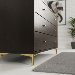 Elegantní designová nožička MIAMI v lesklém zlatém provedení dodá nábytku moderní a luxusní vzhled. Její dynamický, mírně zaoblený tvar působí lehce a nadčasově, díky čemuž se hodí k moderním komodám, skříňkám, TV stolkům i designovým pohovkám. Lesklý zlatý povrch vytváří výrazný akcent a krásně kontrastuje se světlým i tmavým dřevem.